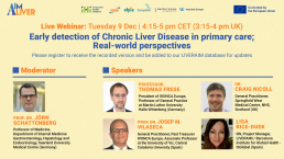 Next Webinar 9 December 2025Early detection of chronic liver disease in primary care: real-world perspectivesRead More Past Webinars A Deep Dive into Steatotic Liver Disease Policy and Regulatory Processes Early diagnosis of Chronic Liver Disease – What does it mean for patients? Tackling the silent epidemic of chronic liver disease through early diagnosis and linkage to care: The LIVERAIM project Past Webinars 14 July 2025A Deep Dive into Steatotic Liver Disease Policy and Regulatory ProcessesRead More 3 March 2025Early diagnosis of Chronic Liver Disease – What does it mean for patients?Read More 12 December 2024Tackling the silent epidemic of chronic liver disease through early diagnosis and linkage to care: The LIVERAIM projectRead More